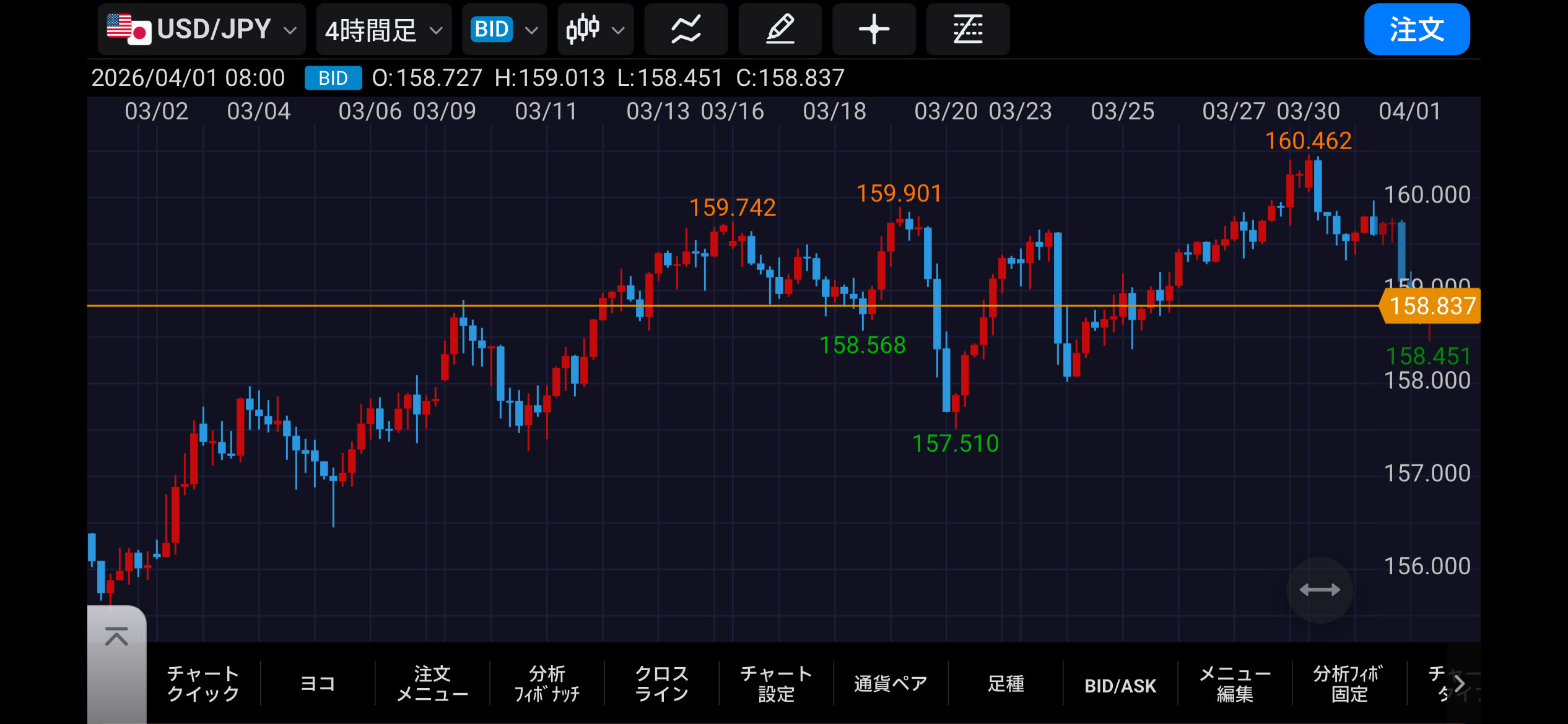 ・ドル円は160円突破(3/27)