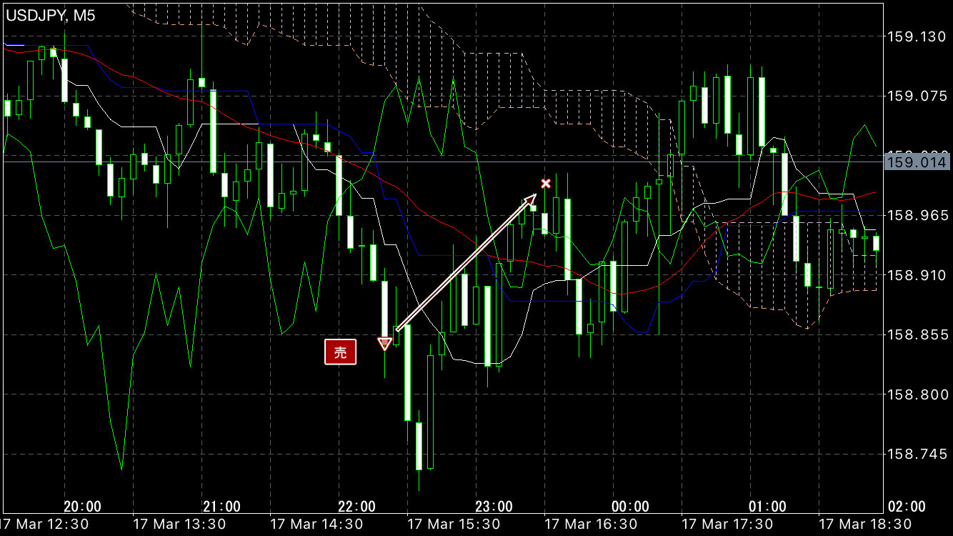 しかし継続せずに戻りで損切り。