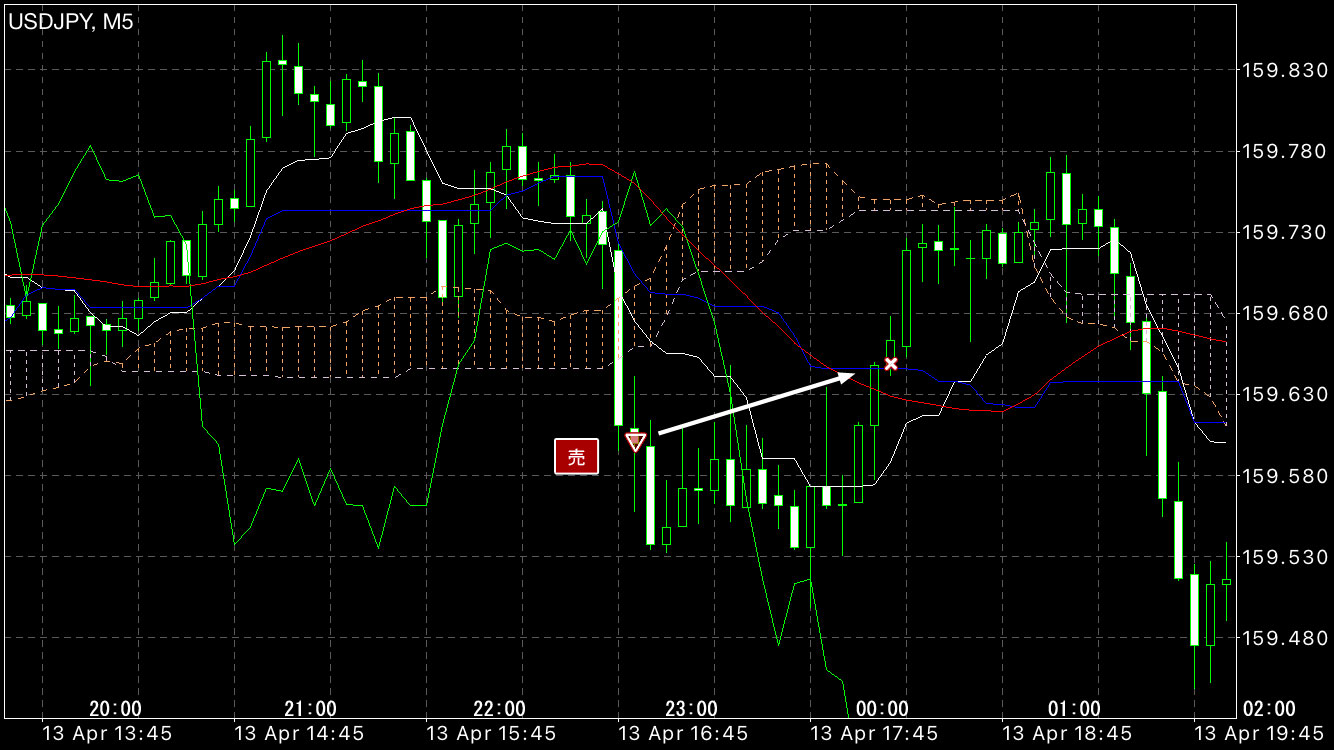 しかし継続せずに戻り確認して損切り。